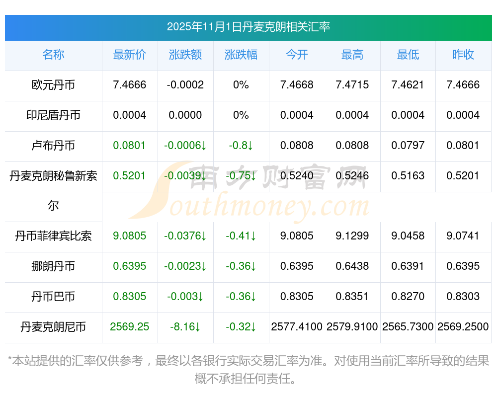 2025年11月1日丹麥克朗相關(guān)匯率查詢