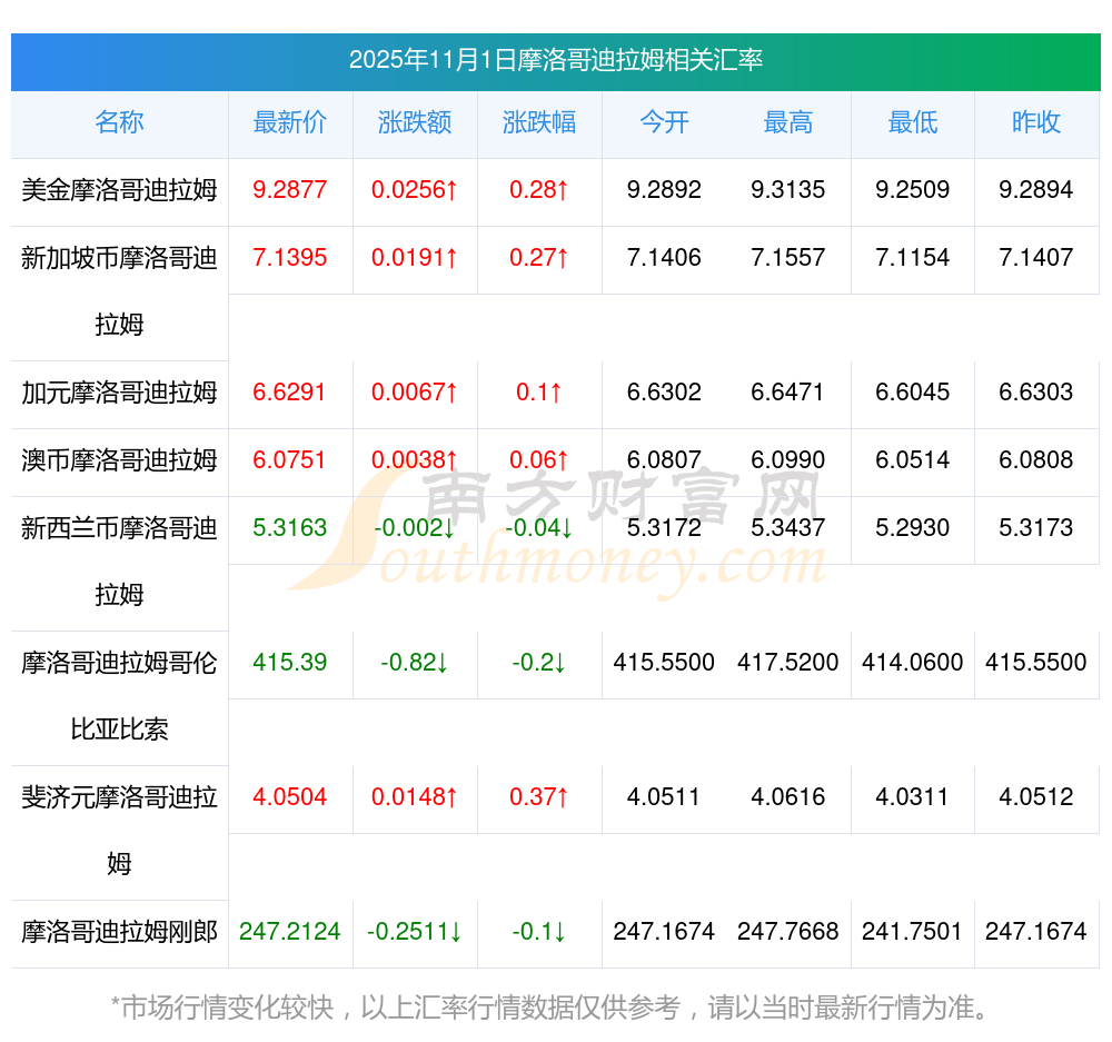 2025年11月1日摩洛哥迪拉姆相關(guān)匯率查詢