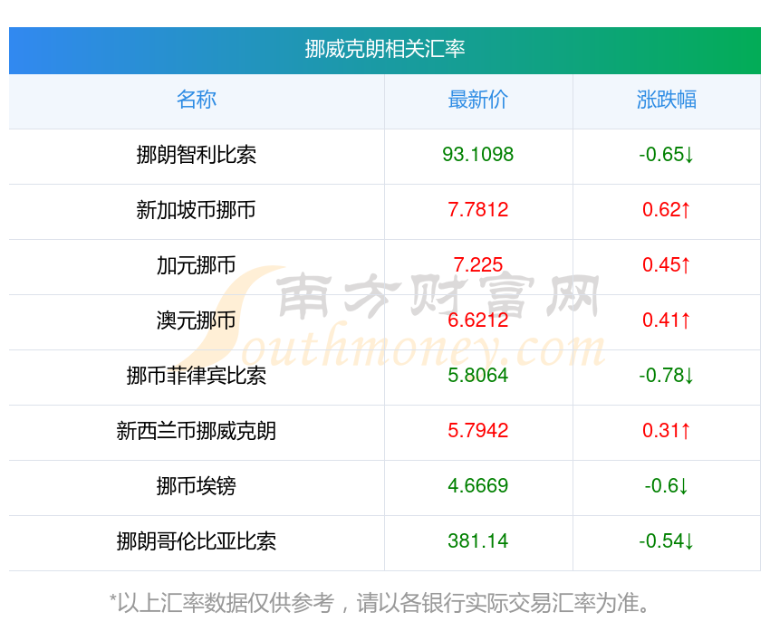 南方財(cái)富網(wǎng)為您提供挪威克朗對(duì)丹幣匯率最新價(jià)格詳情。