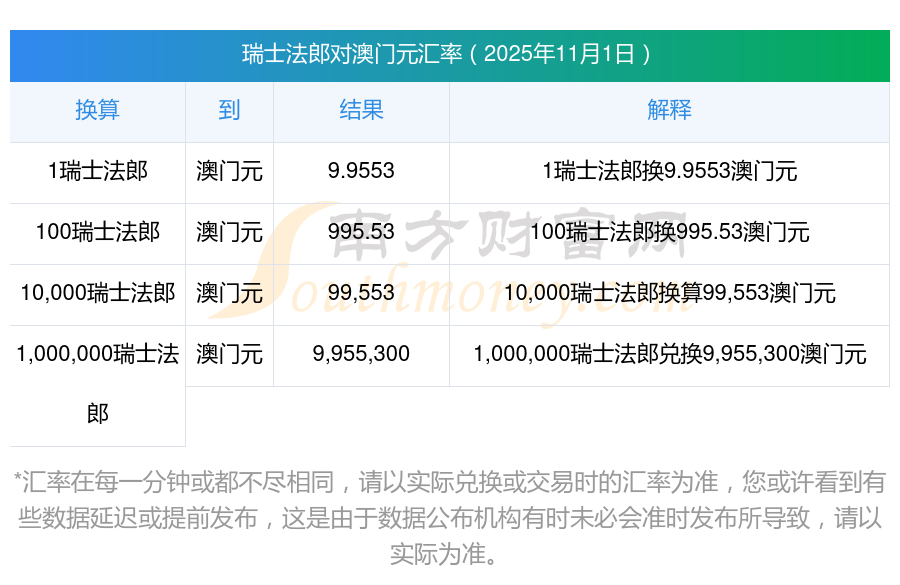 現(xiàn)在瑞士法郎對澳門元匯率價多少?_今日外匯市場11月1日