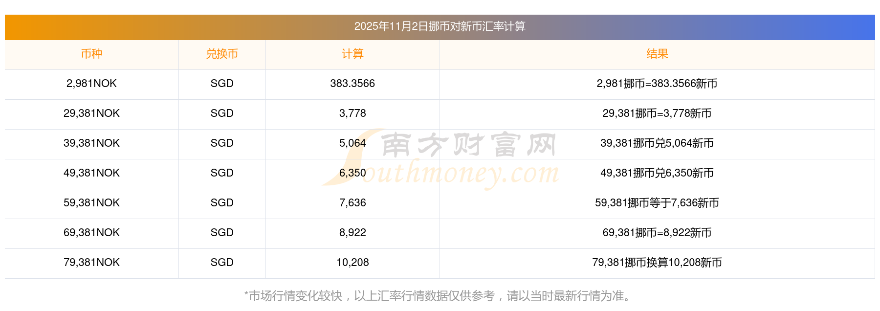 今天挪幣兌換新幣匯率行情一覽11-02