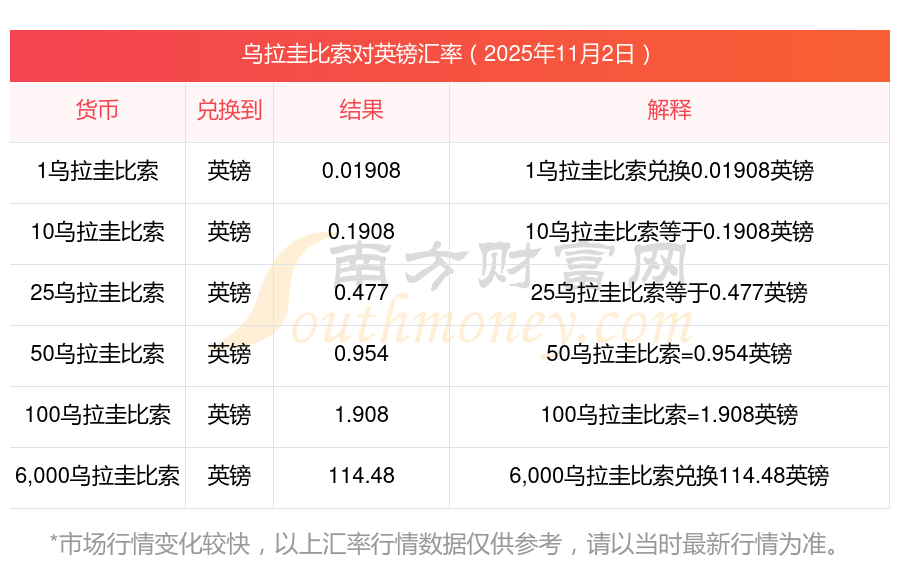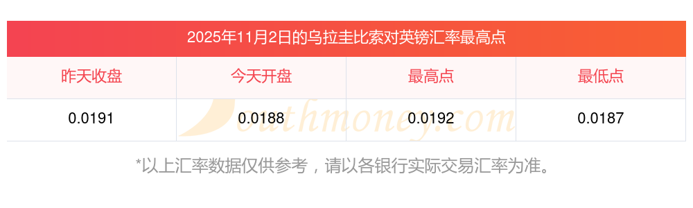 今日烏拉圭比索兌換英鎊價(jià)位表一覽(2025年11月2日)