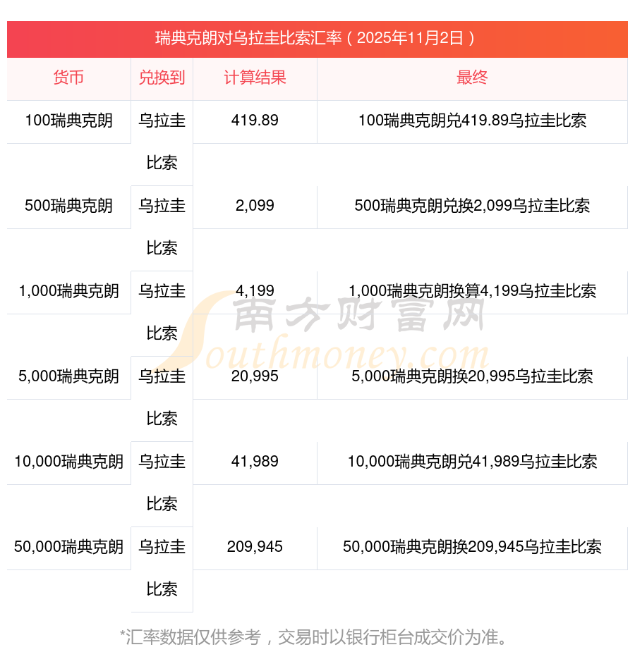 南方財(cái)富網(wǎng)為您提供瑞典克朗換成烏拉圭比索匯率最新價(jià)格詳情。