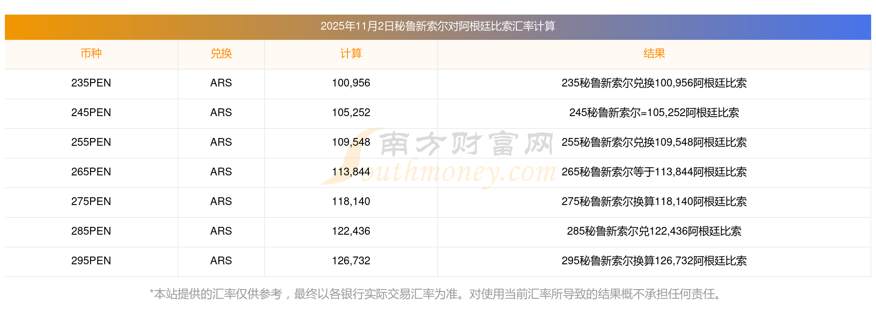 今日匯率 | 秘魯新索爾對(duì)阿根廷比索今天的匯率多少? 11月2日