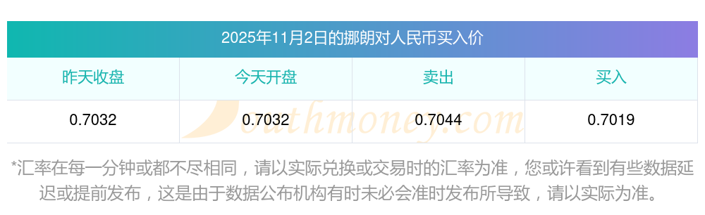 2025-11-02今日外匯挪朗對人民幣匯率一覽