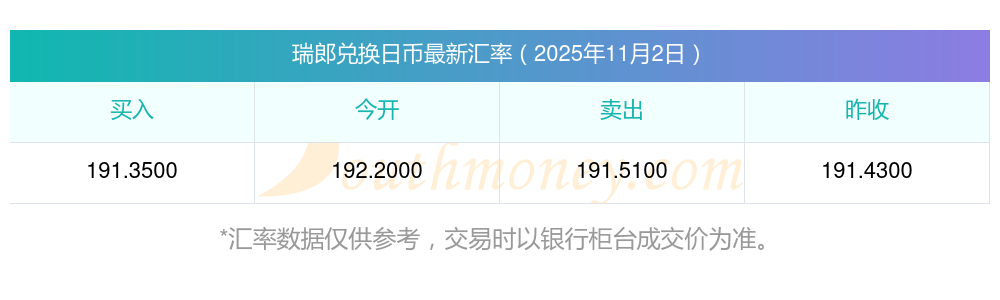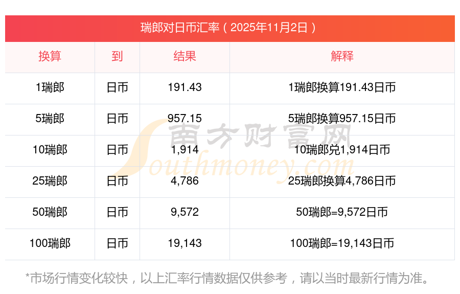 南方財富網(wǎng)為您提供瑞郎對日幣匯率最新價格詳情。