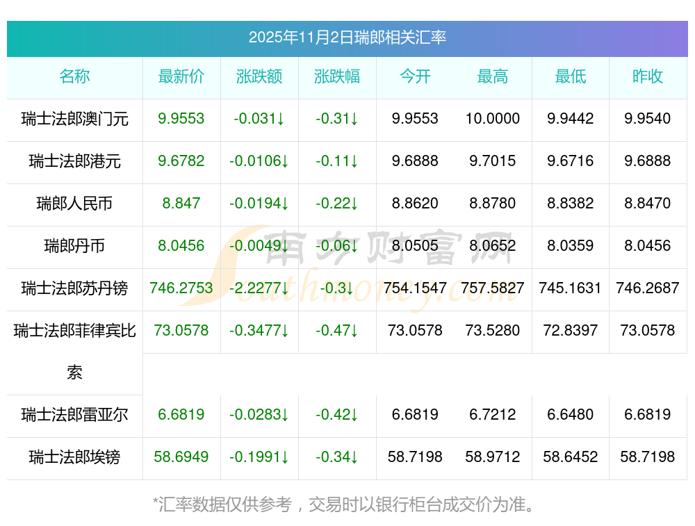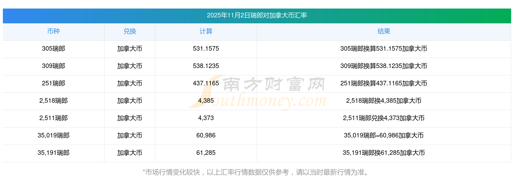 69瑞郎兌換加拿大幣折算匯率表_今天外匯查詢2025/11/2