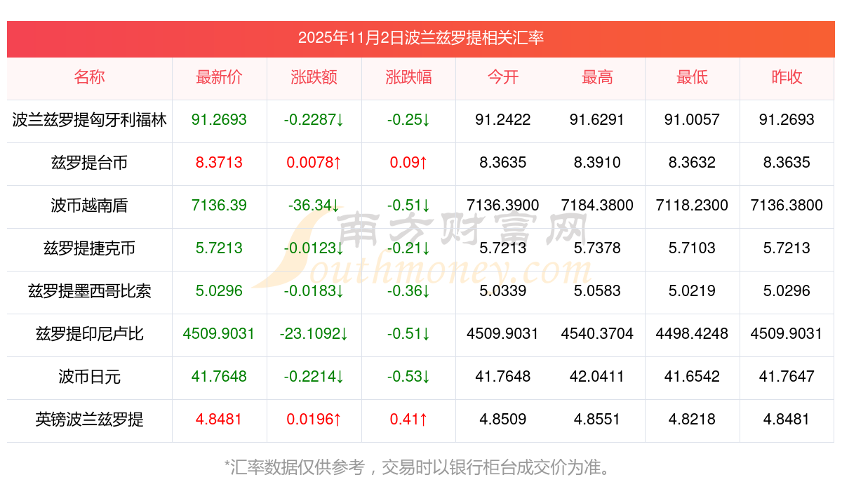 波蘭茲羅提兌換蘭幣行情 波蘭茲羅提匯率今日多少11-2