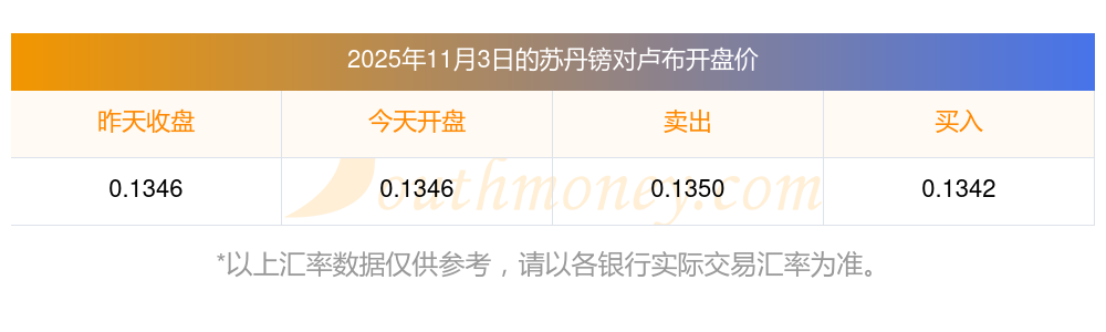 2025年11月3日蘇丹鎊與盧布的兌換匯率計算如下: