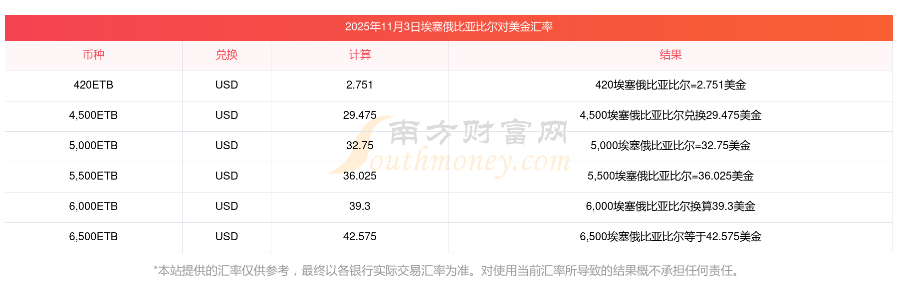 南方財(cái)富網(wǎng)為您提供埃塞俄比亞比爾對(duì)美金匯率最新價(jià)格詳情。