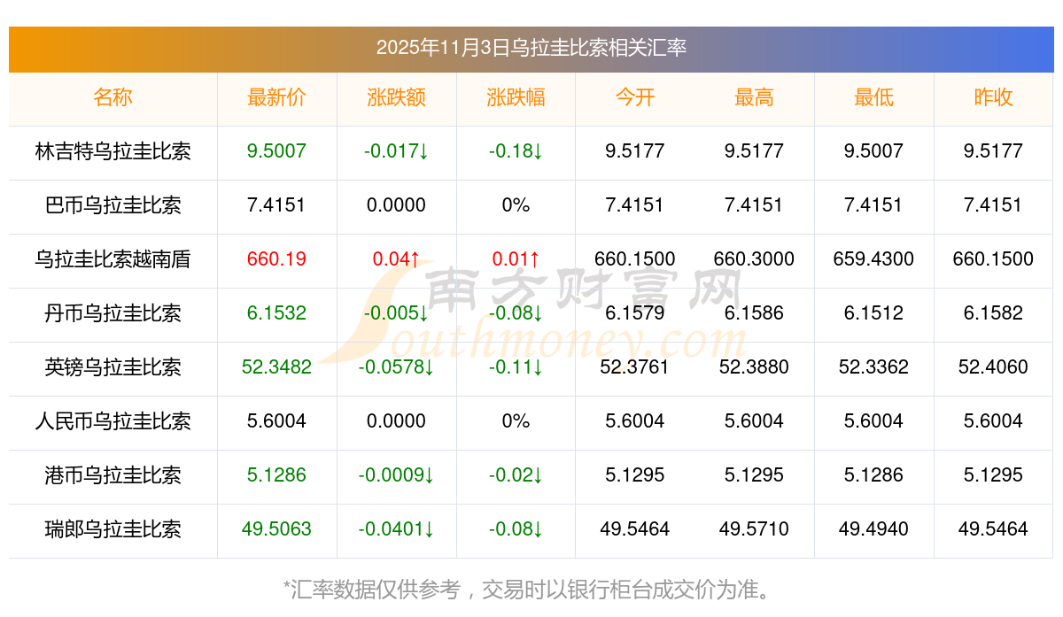 2025年11月3日烏拉圭比索相關(guān)匯率查詢