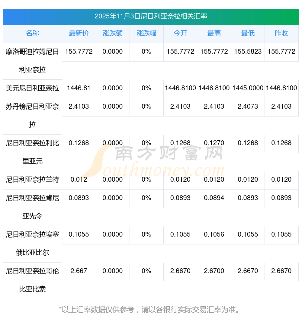 2025年11月3日尼日利亞奈拉相關(guān)匯率查詢