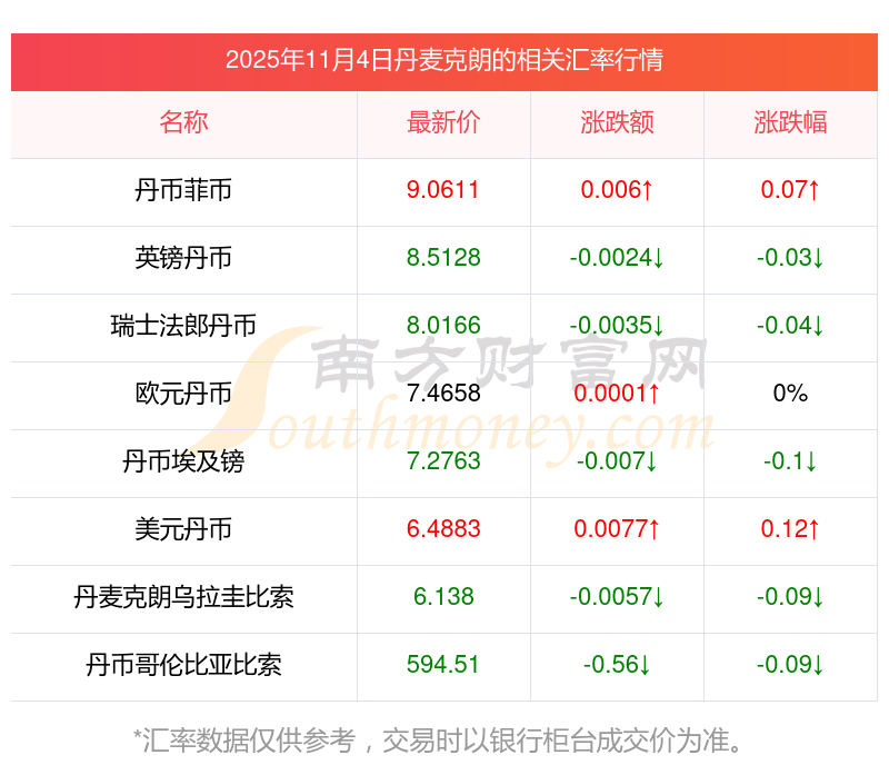 2025年11月4日丹麥克朗相關(guān)匯率查詢
