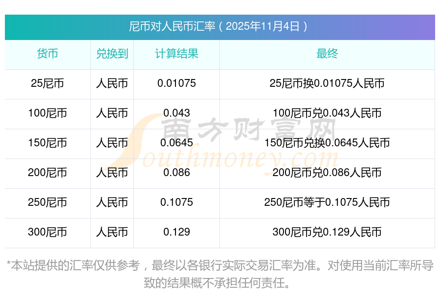 南方財(cái)富網(wǎng)為您提供尼幣對人民幣匯率最新價(jià)格詳情。