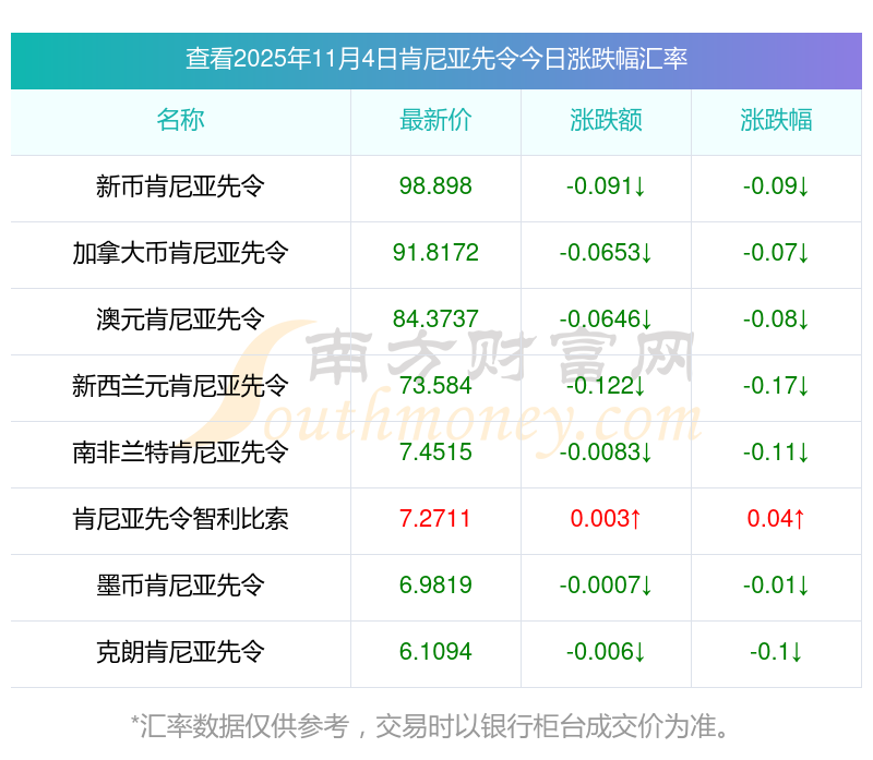 2025年11月4日肯尼亞先令相關(guān)匯率查詢