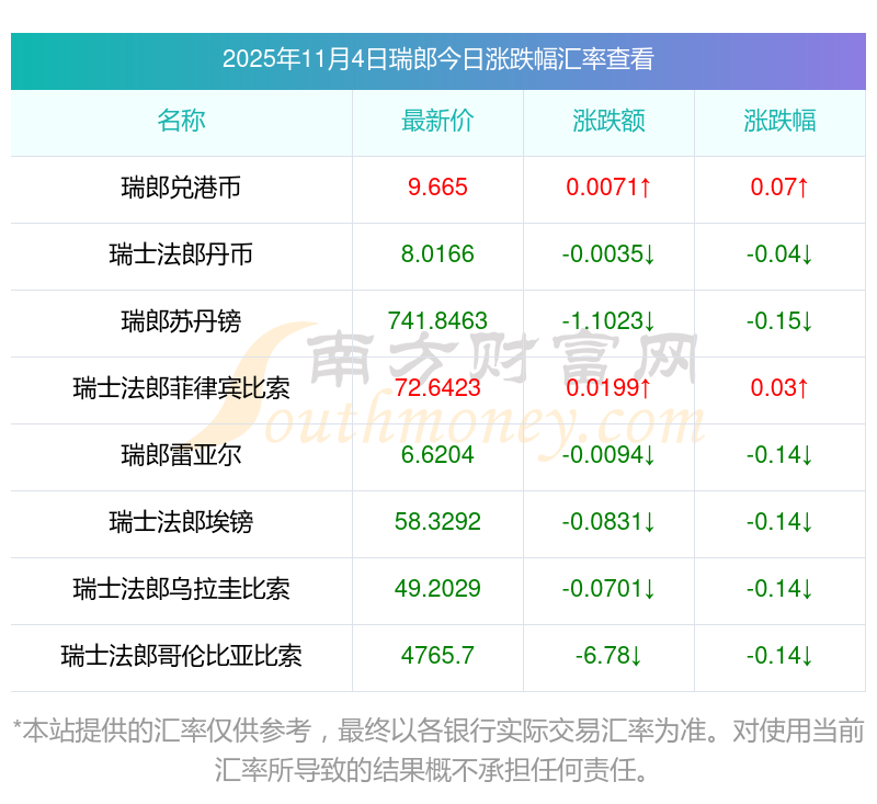 2025年11月4日瑞郎相關(guān)匯率查詢