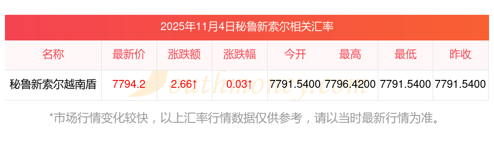 今日計(jì)算2025年11月4日秘魯新索爾兌換越南盾匯率最新