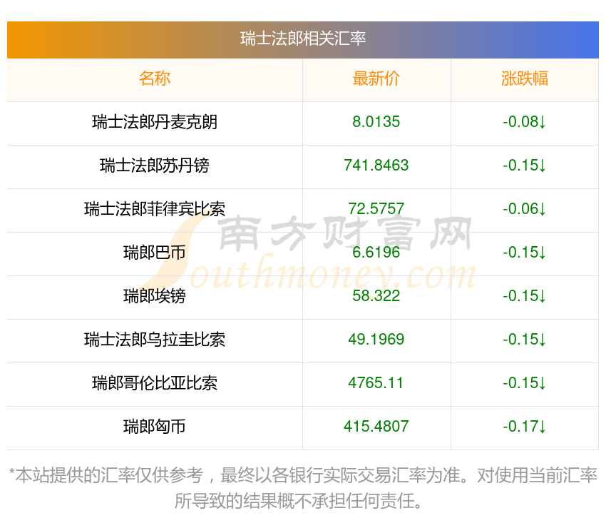 2025年11月4日瑞士法郎相關(guān)匯率查詢