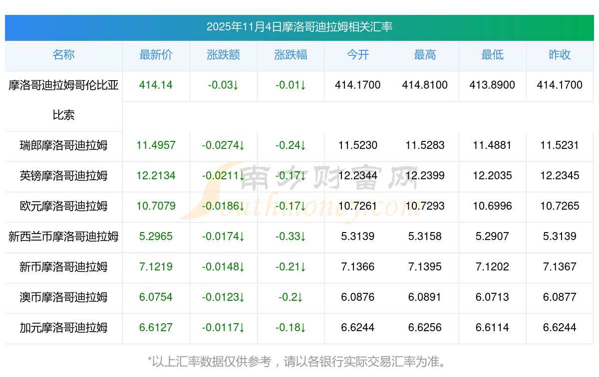 2025年11月4日摩洛哥迪拉姆相關(guān)匯率查詢