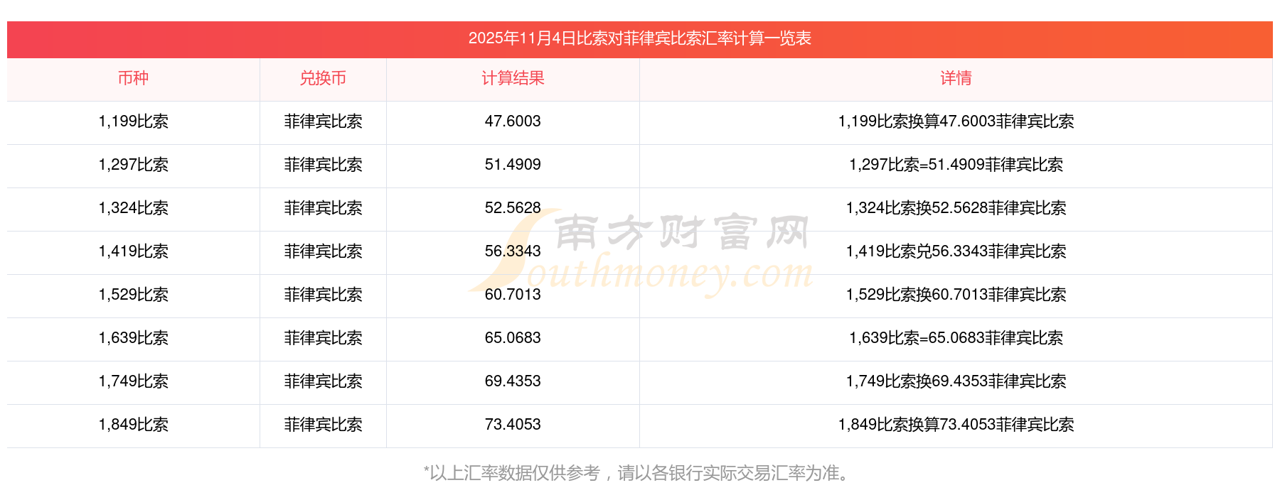 比索對(duì)菲律賓比索匯率多少_外匯查詢網(wǎng)11月4日