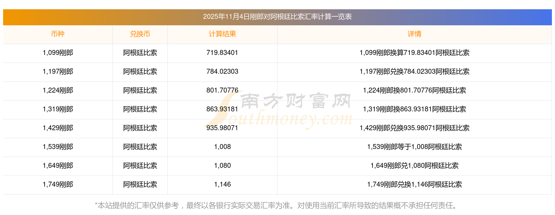 45剛郎兌換是多少阿根廷比索2025年11月4日