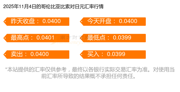 哥倫比亞比索今日匯率:哥倫比亞比索對(duì)日元匯率是多少?2025/11/4
