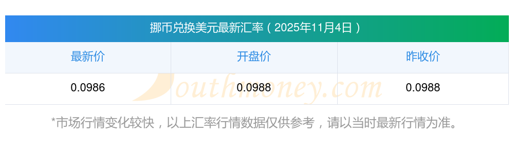 南方財(cái)富網(wǎng)為您提供挪幣對美元匯率最新價(jià)格詳情。