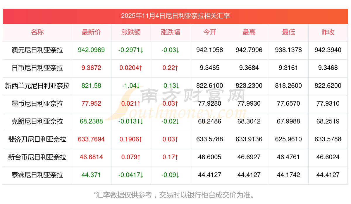 2025年11月4日尼日利亞奈拉相關(guān)匯率查詢