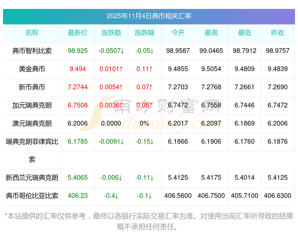 2025年11月4日典幣兌換丹幣最新匯率:0.683100,今開:0.6834,昨收:0.6833,最高:0.6836,最低:0.6829。