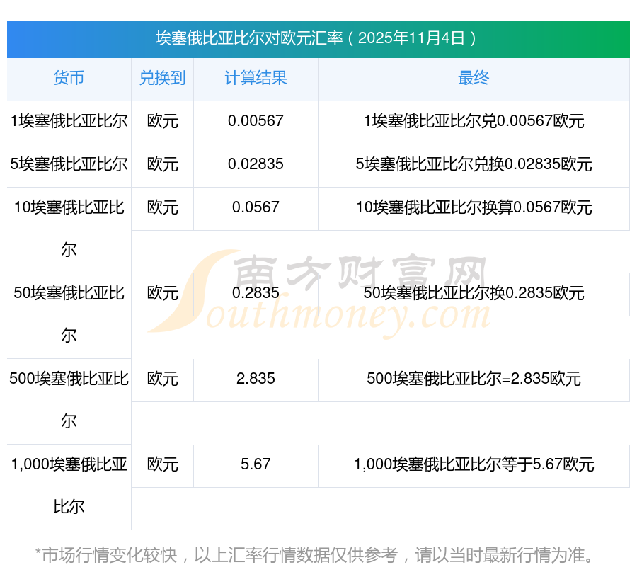 今天埃塞俄比亞比爾對歐元匯率_7埃塞俄比亞比爾對歐元匯率多少(11月4日)