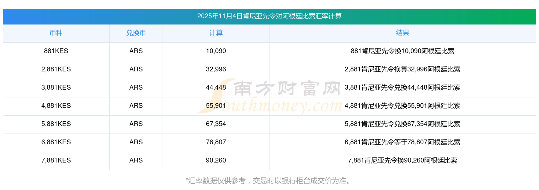 今天肯尼亞先令對(duì)阿根廷比索匯率中間價(jià)是多少?肯尼亞先令換阿根廷比索計(jì)算?2025/11/4