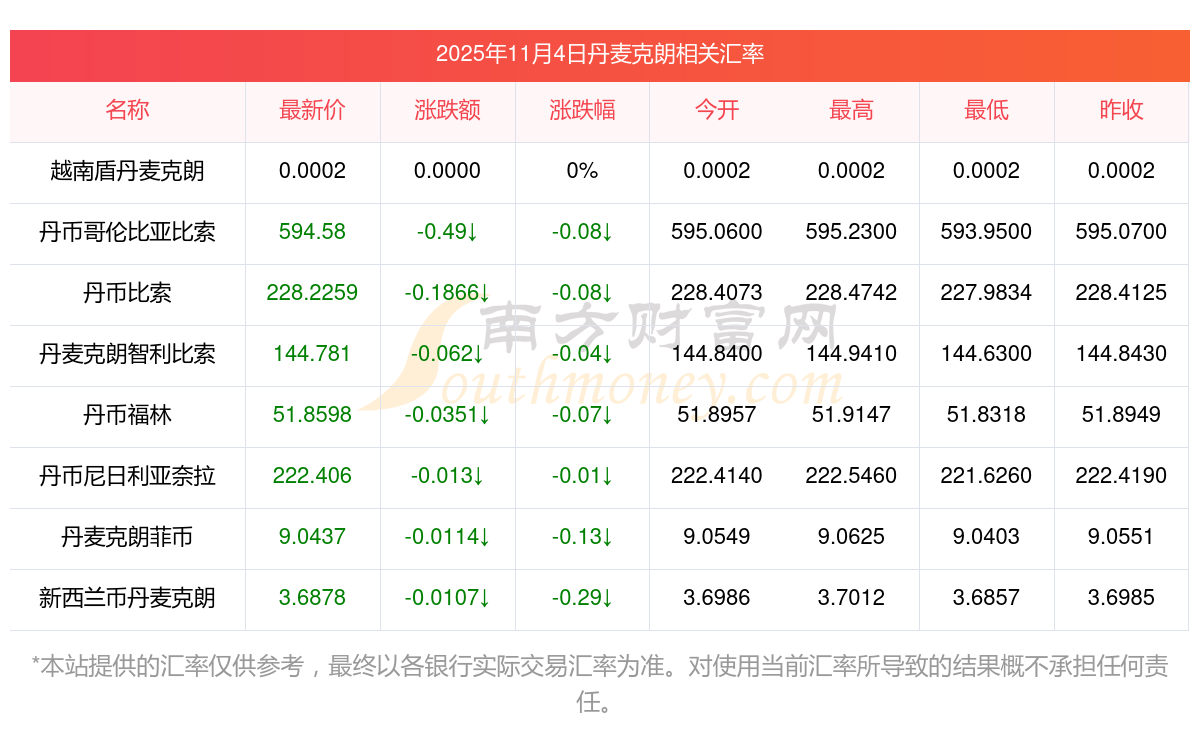 2025年11月4日丹麥克朗相關(guān)匯率查詢