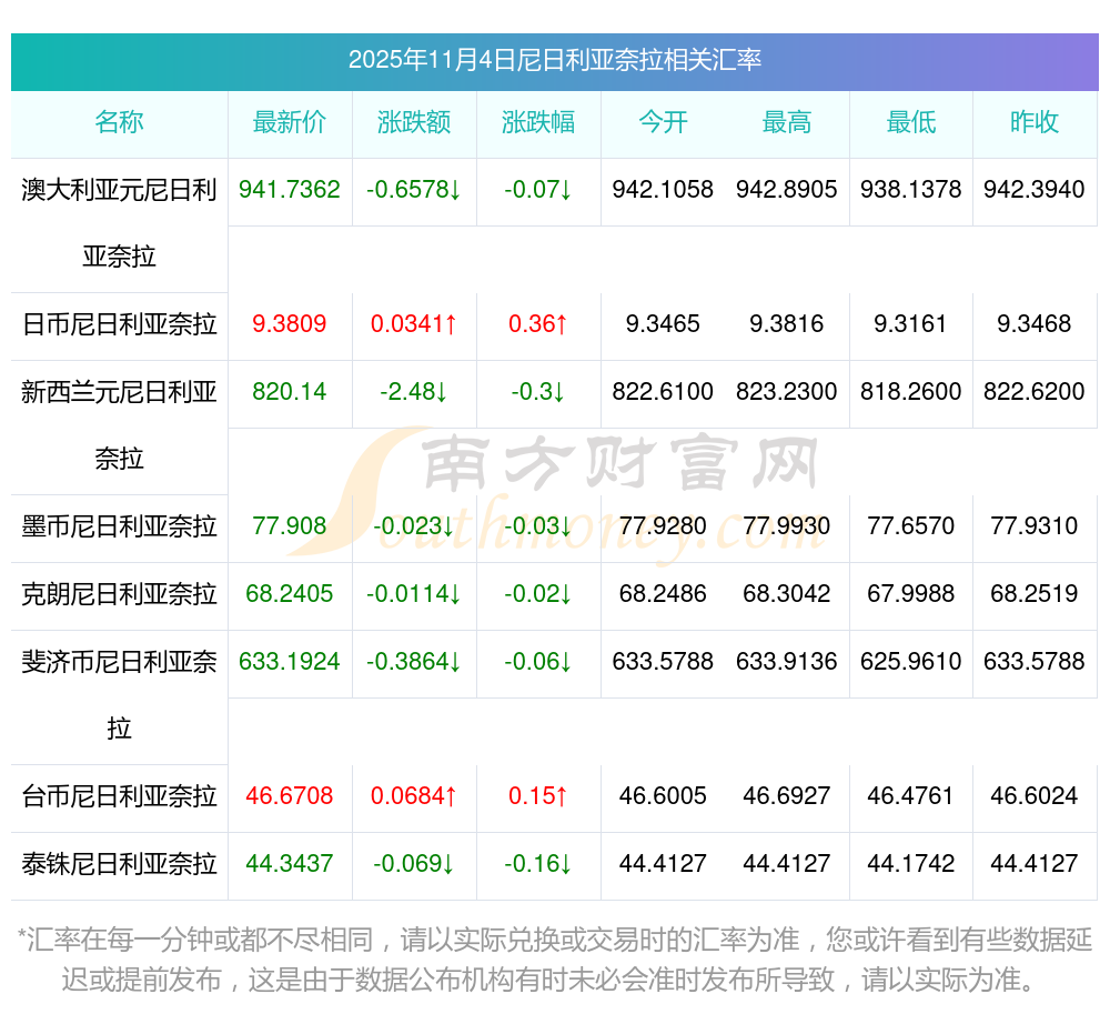 2025年11月4日尼日利亞奈拉相關(guān)匯率查詢