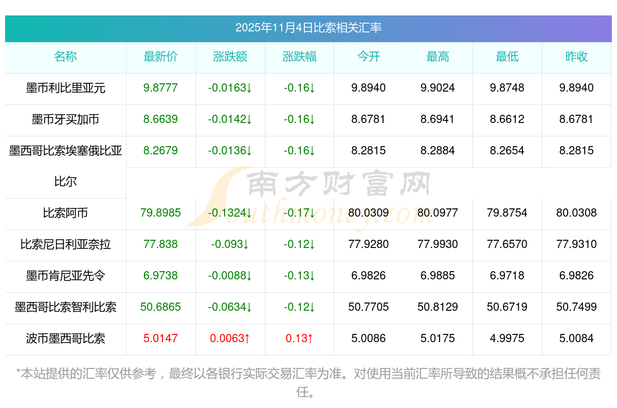 匯率在每一分鐘或都不盡相同,請以實際兌換或交易時的匯率為準,您或許看到有些數(shù)據(jù)延遲或提前發(fā)布,這是由于數(shù)據(jù)公布機構有時未必會準時發(fā)布所導致,請以實際為準。