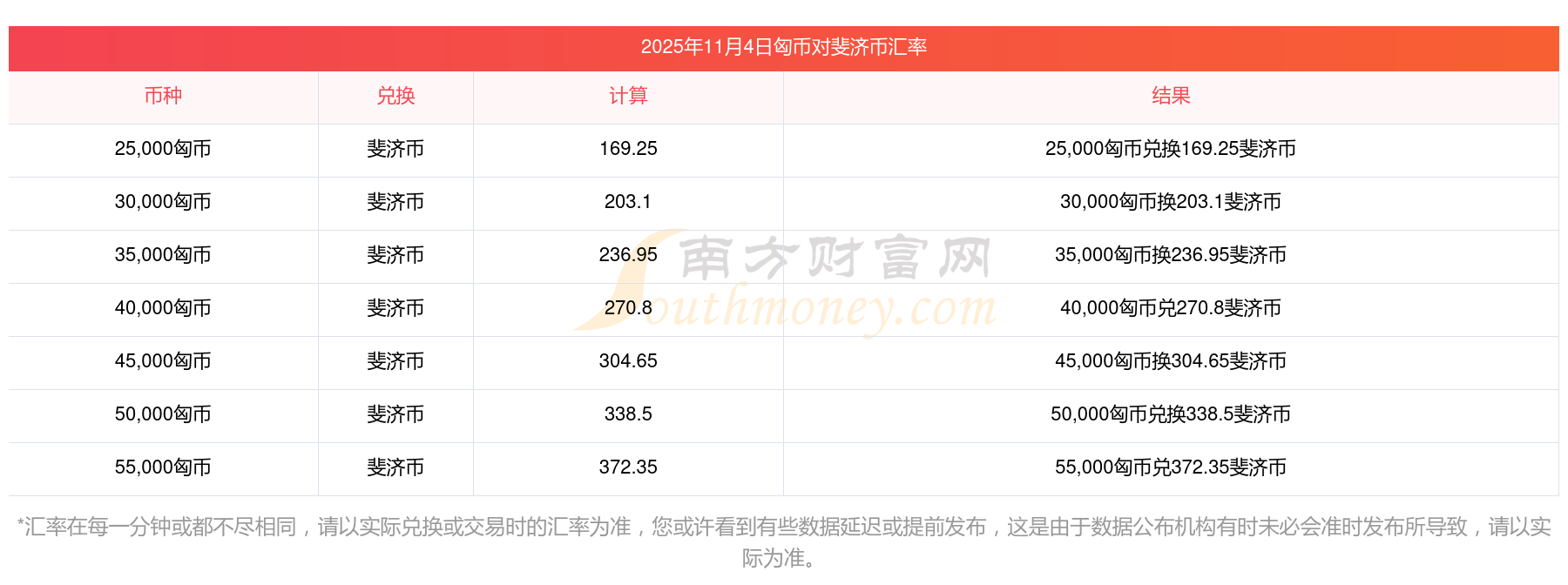 2025年11月4日匈幣與斐濟幣的兌換匯率計算如下: