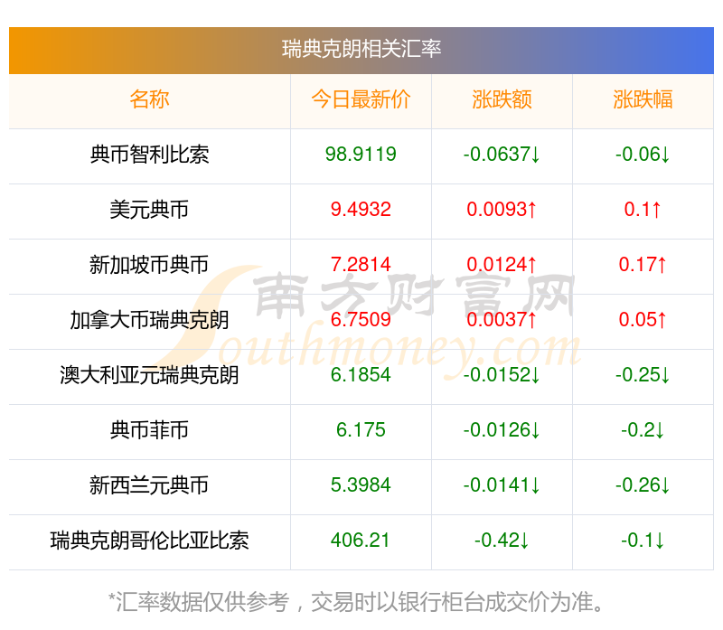 2025年11月4日瑞典克朗相關(guān)匯率查詢