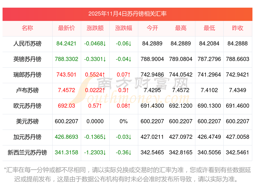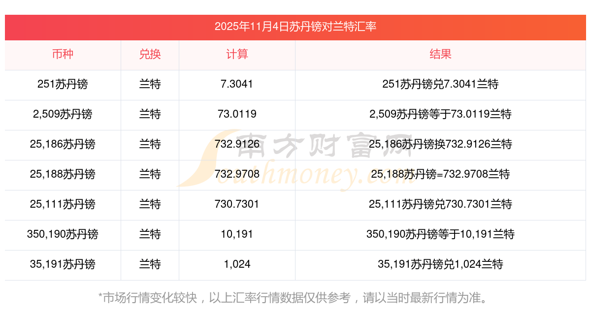 蘭特查詢_今天蘇丹鎊換蘭特匯率報價?2025/11/04