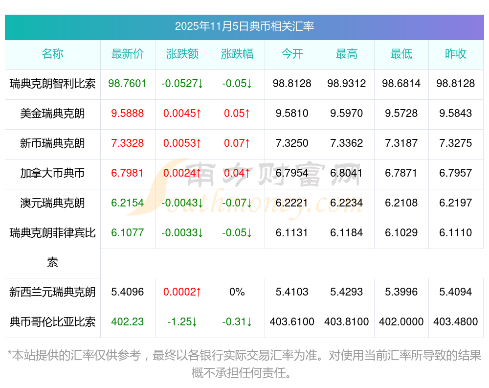 2025年11月5日典幣相關(guān)匯率查詢