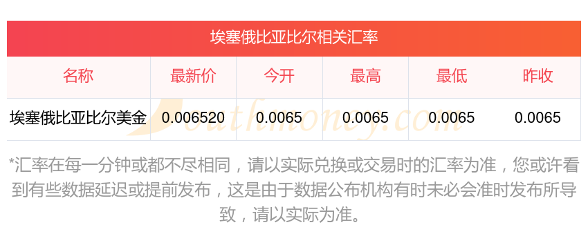 南方財富網(wǎng)為您提供埃塞俄比亞比爾對美金匯率最新價格詳情。