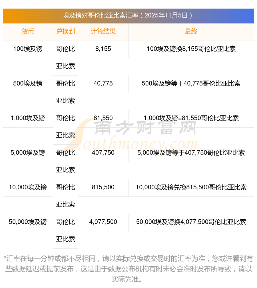今天埃及鎊16能換多少哥倫比亞比索_外匯匯率計(jì)算 2025/11/05