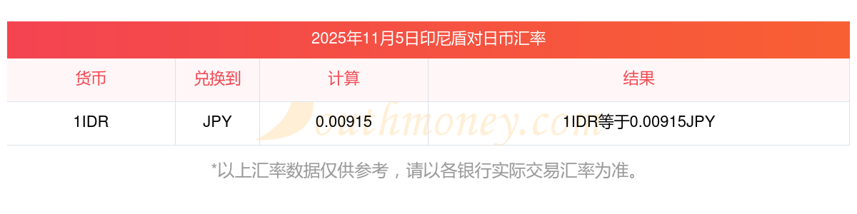 印尼盾與日元兌換,2025-11-051印尼盾能兌換多少日元?