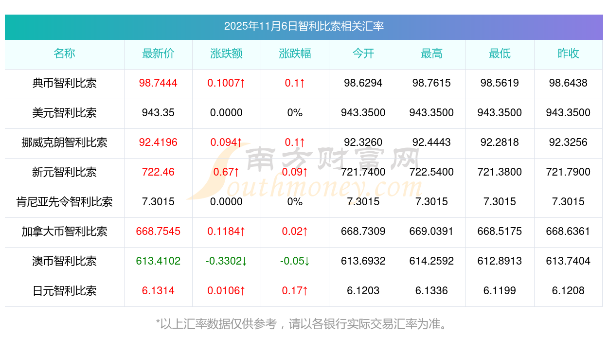 南方財富網(wǎng)為您提供智利比索對秘魯新索爾匯率最新價格詳情。