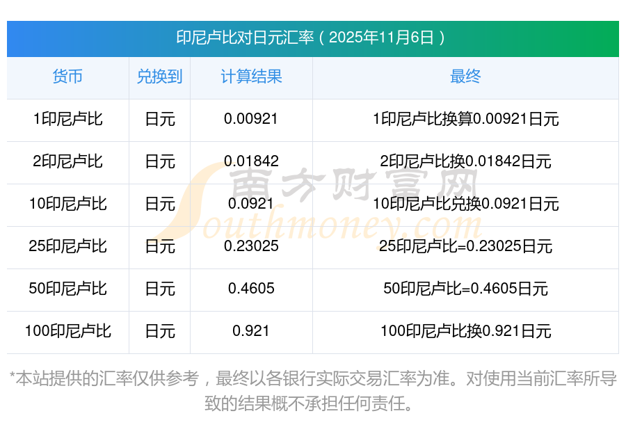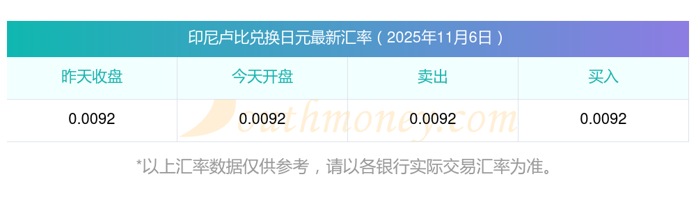 印尼盾與日元匯率兌換,今日印尼盾能兌換多少日元?11-6