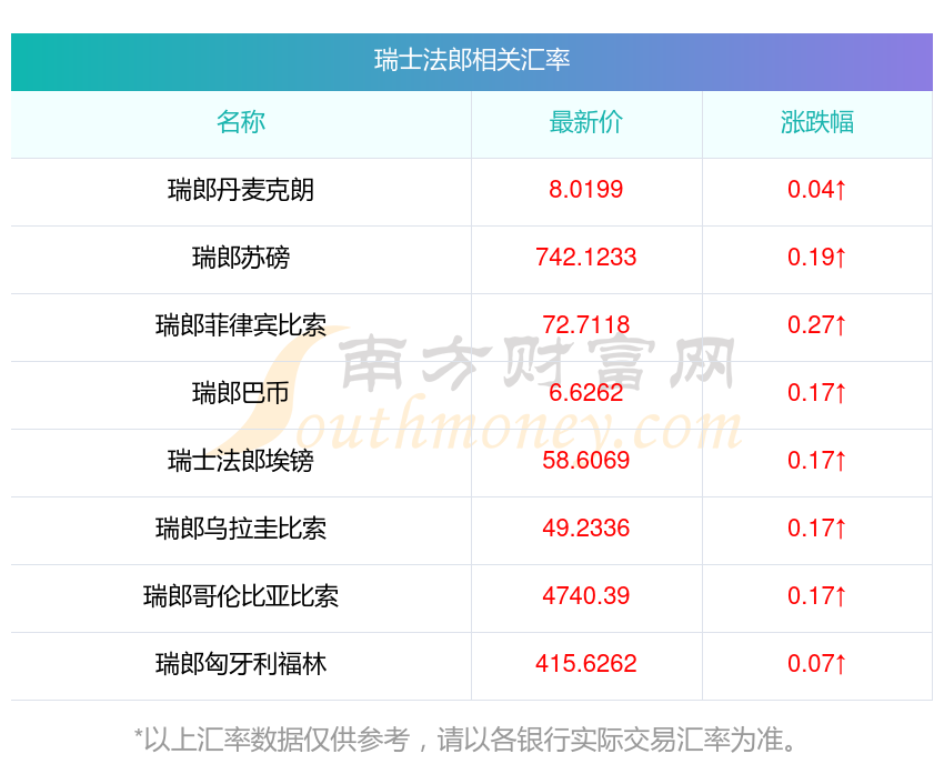 2025年11月6日瑞士法郎相關(guān)匯率查詢