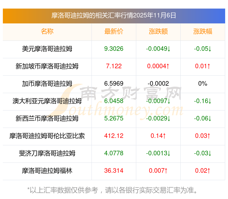 2025年11月6日摩洛哥迪拉姆相關(guān)匯率查詢