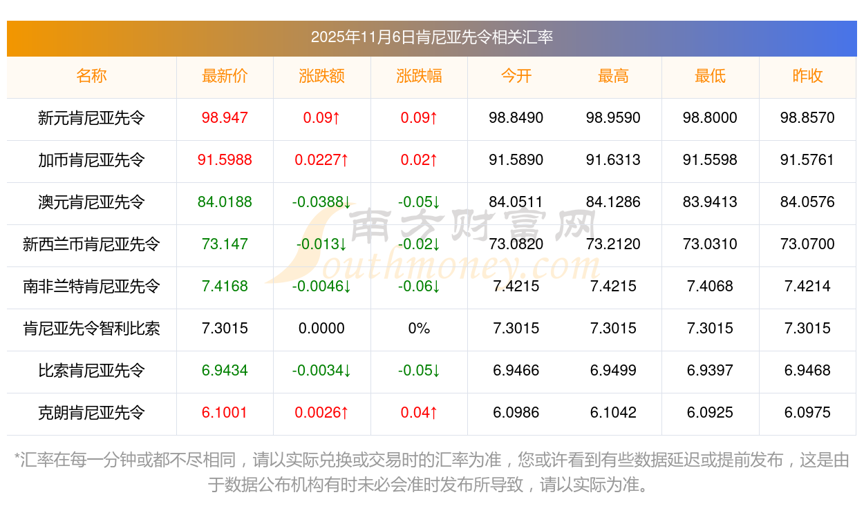 2025年11月6日肯尼亞先令相關(guān)匯率查詢