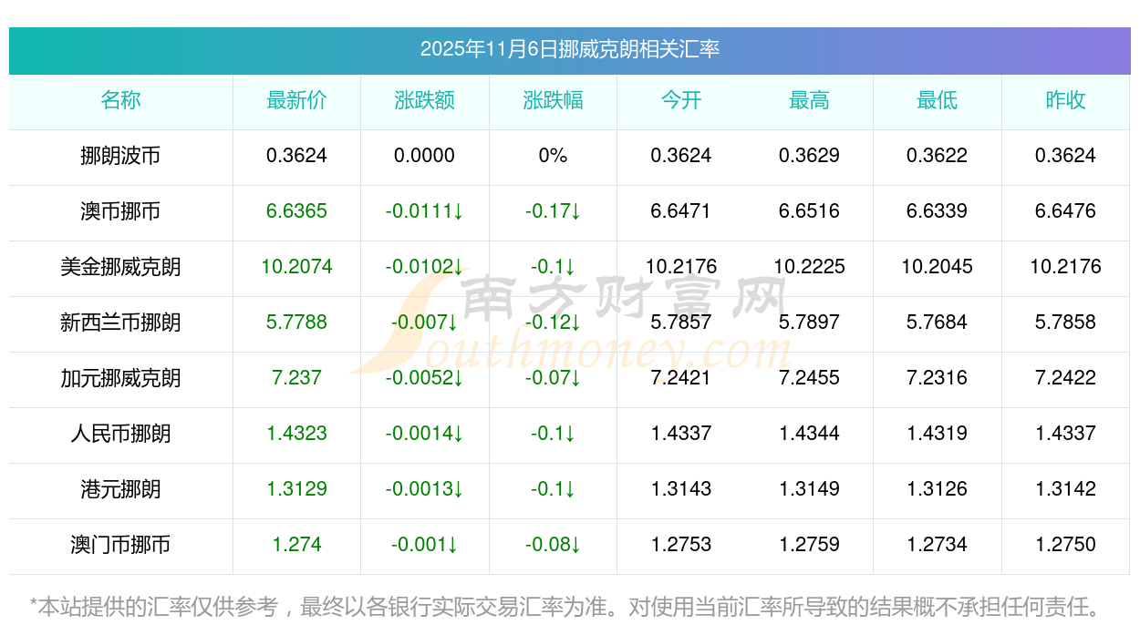2025年11月6日挪威克朗相關(guān)匯率查詢