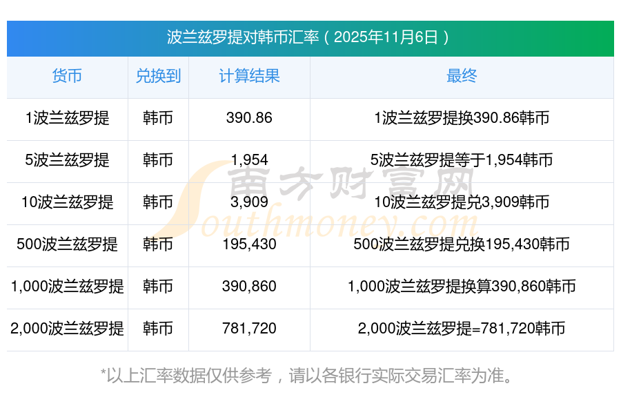 最新今天二波蘭茲羅提等于多少韓幣(2025年11月6日)?