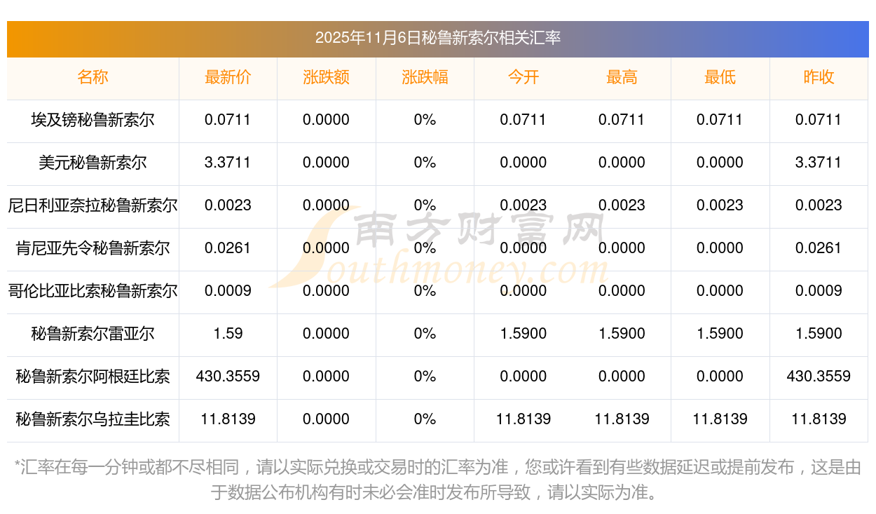 2025-11-06秘魯新索爾對摩洛哥迪拉姆實時匯率多少?