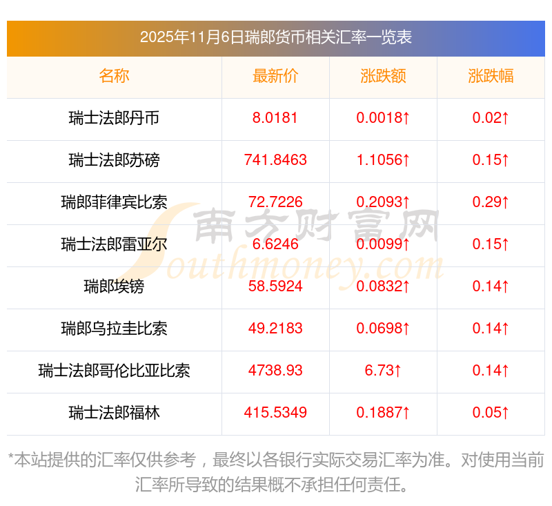 2025年11月6日瑞郎相關(guān)匯率查詢